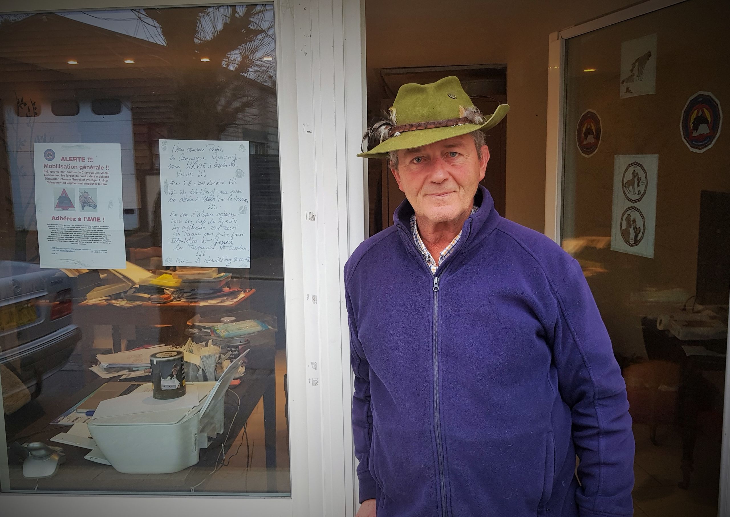 "Le temps n'est plus aux tergiversations, mais à l'action", lance fièrement depuis son bureau-capharnaüm ce retraité qui a beaucoup baroudé professionnellement, avant de se poser au haras des Tilleuls sur les hauts de la commune. Une feuille "Alerte, mobilisation générale" est collée à la vitrine du local. Lui parle d'"opération d'urgence".